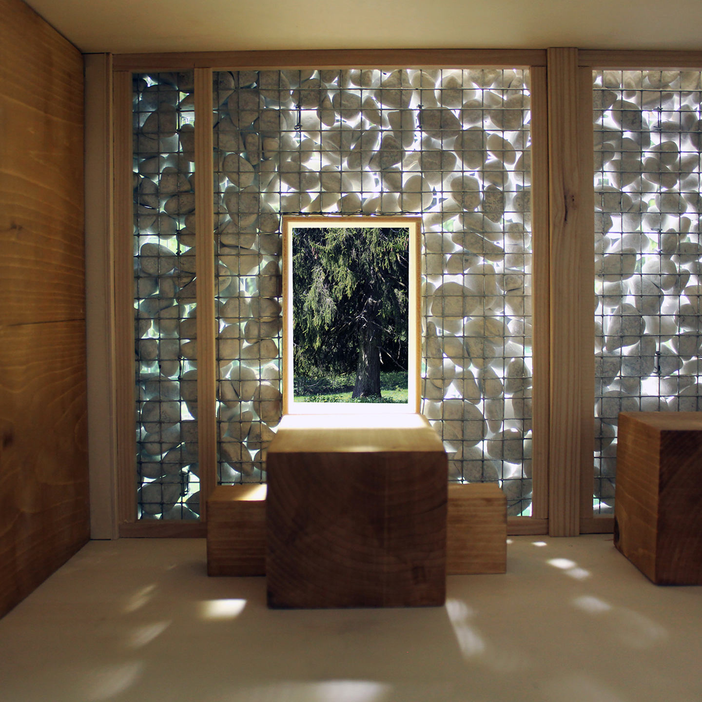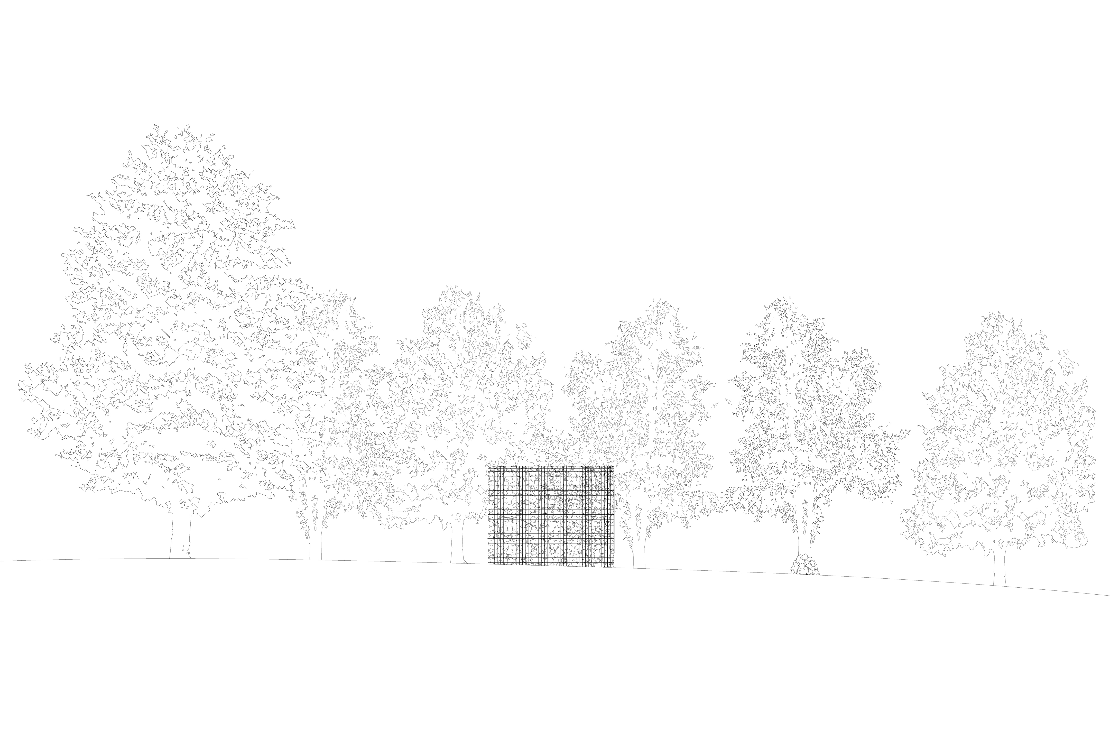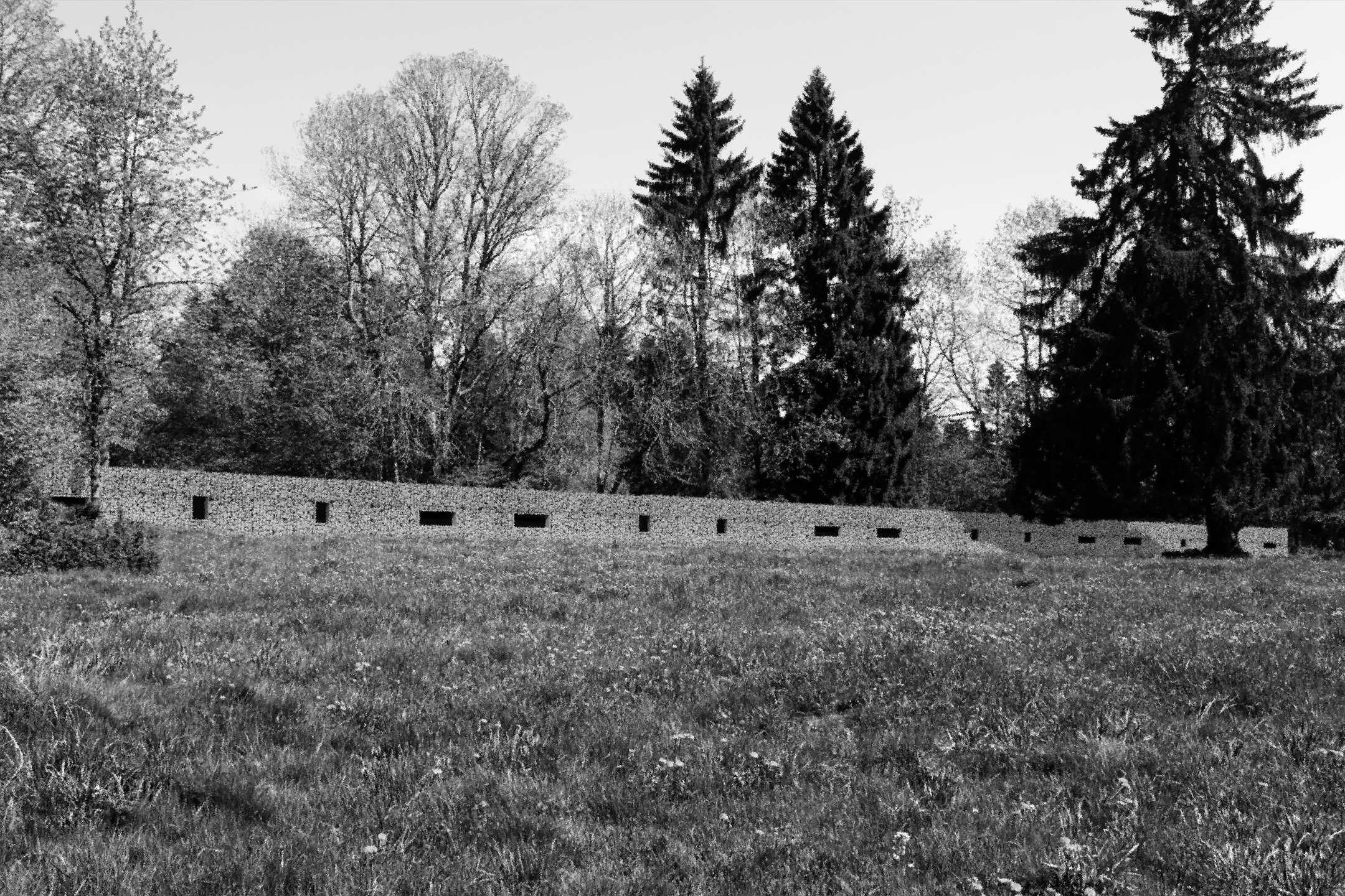 Der Regionalpark Chasseral will neue Erholungsformen etablieren und stellt für räumliche Interventionen eine Waldlichtung an ruhiger Lage zur Verfügung. Während der ersten Ortsbegehung trat eine historische Steinmauer mit eingewachsenem Baumbestand in den Fokus, die im Norden der Lichtung als physische Raumgrenze fungiert. Innerhalb dieses Schwellenraumes eignet sich das resultierende Objekt dessen Eigenschaften an und unterstreicht diese durch sein Erscheinungsbild. In seinem Innern reduziert es sich auf das Wesentliche und führt einen qualitativen Dialog mit der Aussenwelt und dem eigenen Sein.