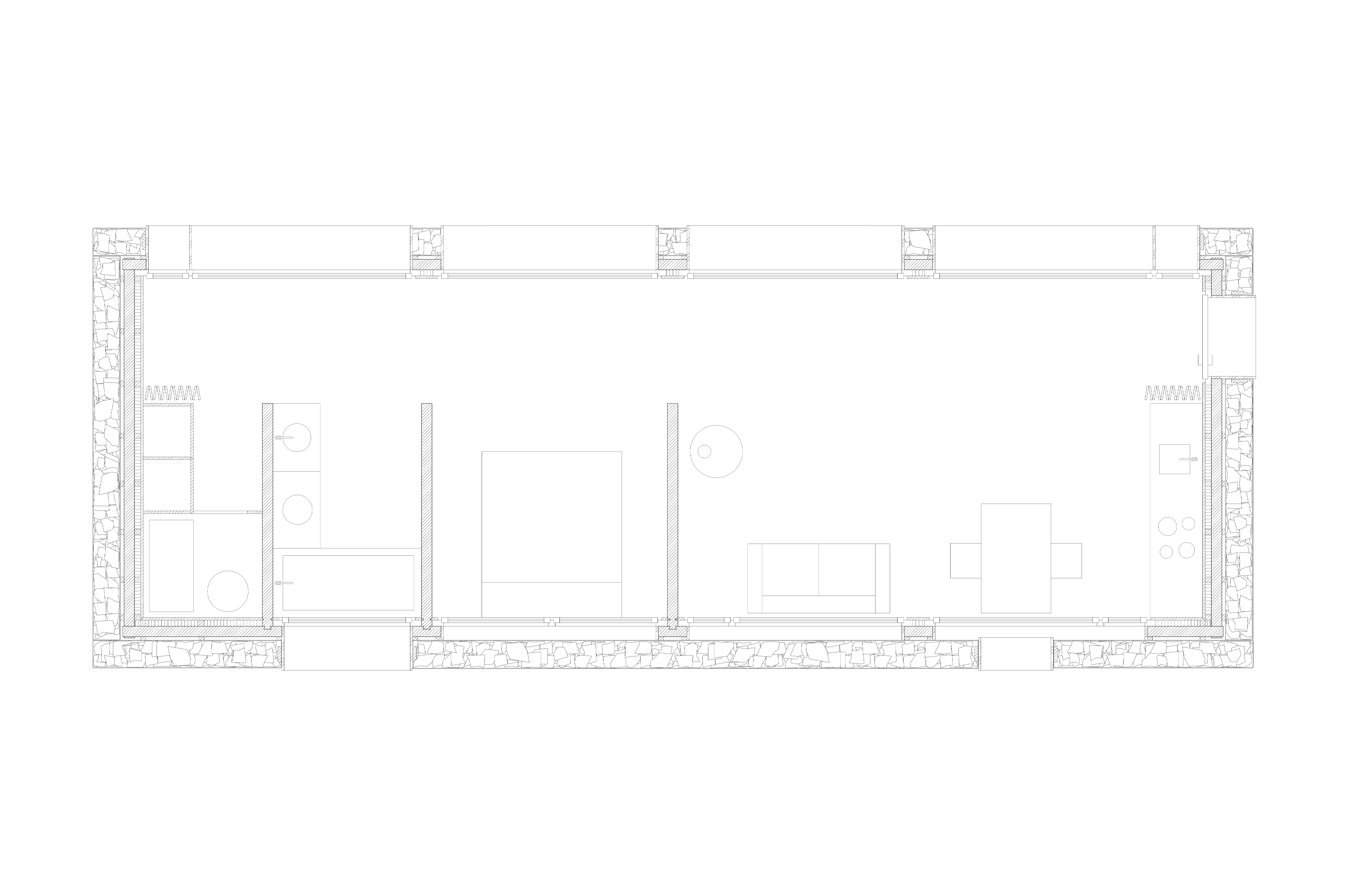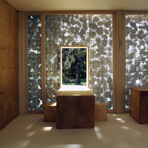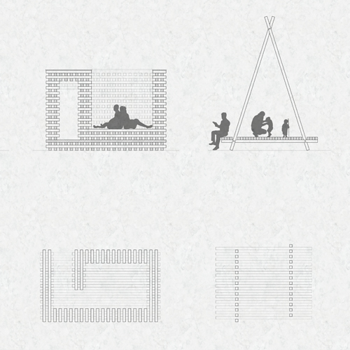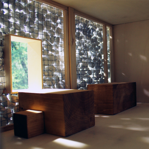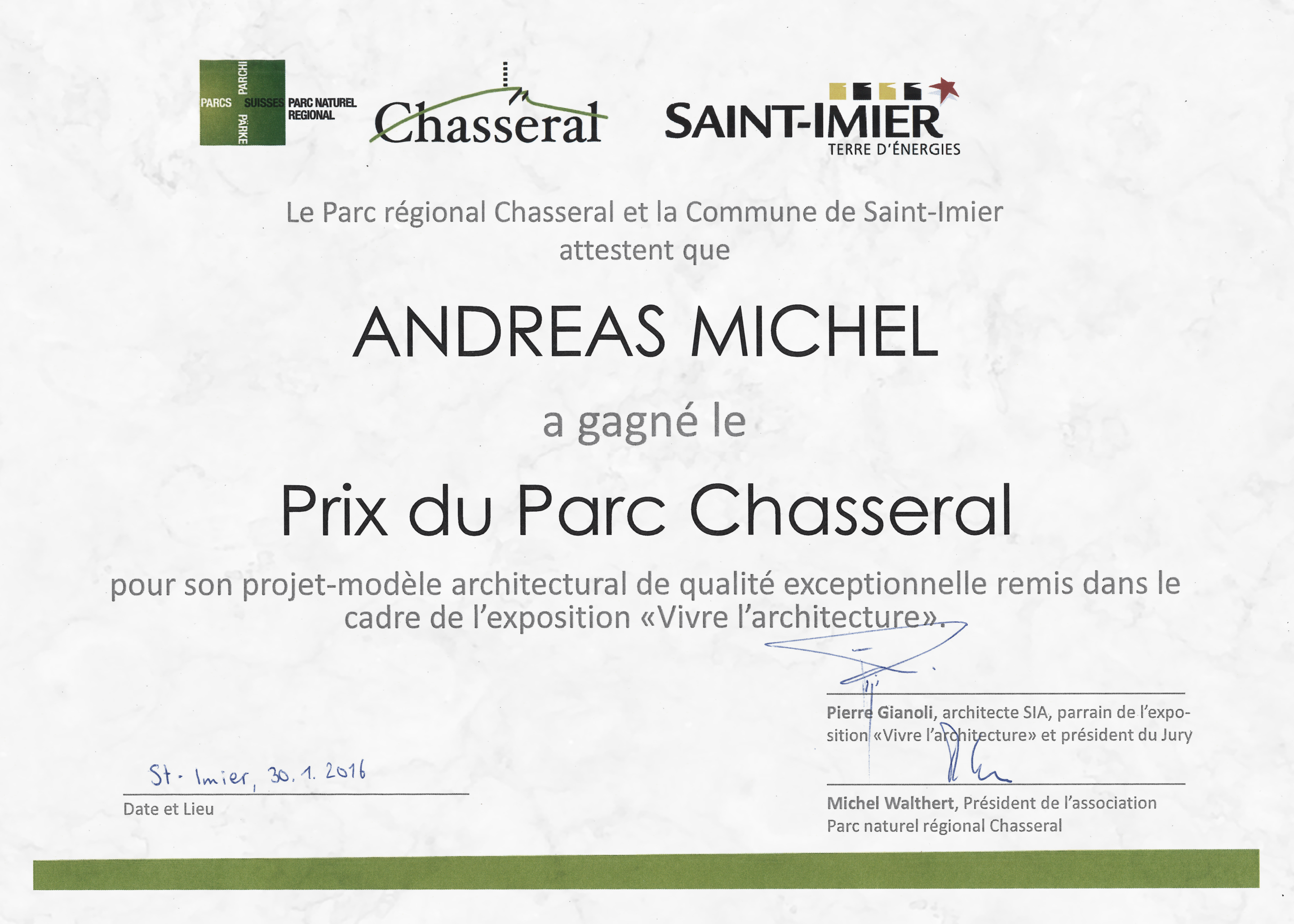 Der Regionalpark Chasseral will neue Erholungsformen etablieren und stellt für räumliche Interventionen eine Waldlichtung an ruhiger Lage zur Verfügung. Während der ersten Ortsbegehung trat eine historische Steinmauer mit eingewachsenem Baumbestand in den Fokus, die im Norden der Lichtung als physische Raumgrenze fungiert. Innerhalb dieses Schwellenraumes eignet sich das resultierende Objekt dessen Eigenschaften an und unterstreicht diese durch sein Erscheinungsbild. In seinem Innern reduziert es sich auf das Wesentliche und führt einen qualitativen Dialog mit der Aussenwelt und dem eigenen Sein.