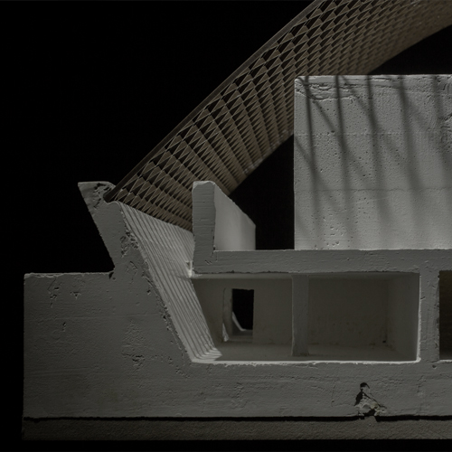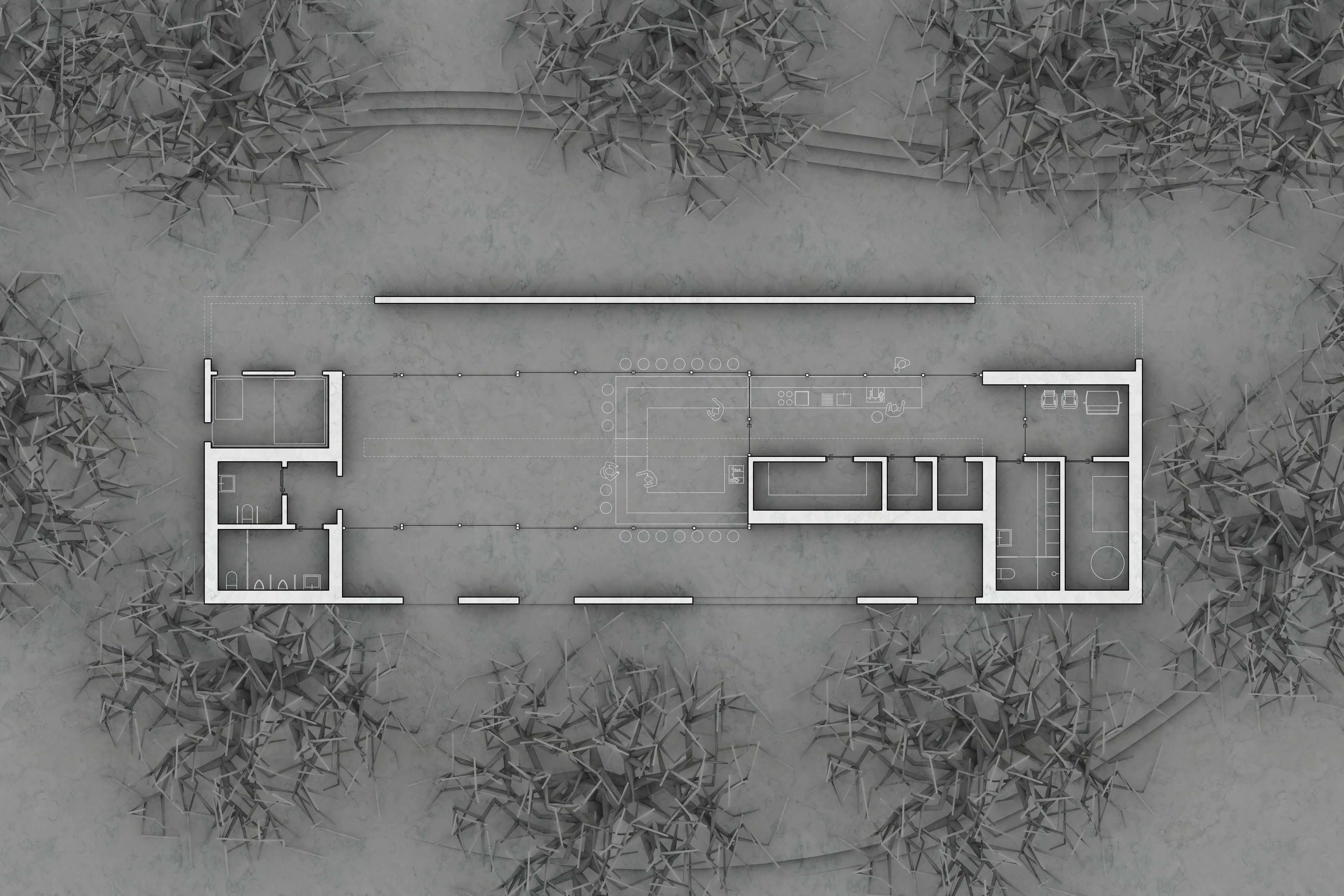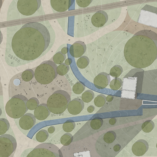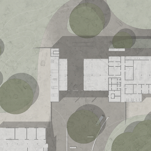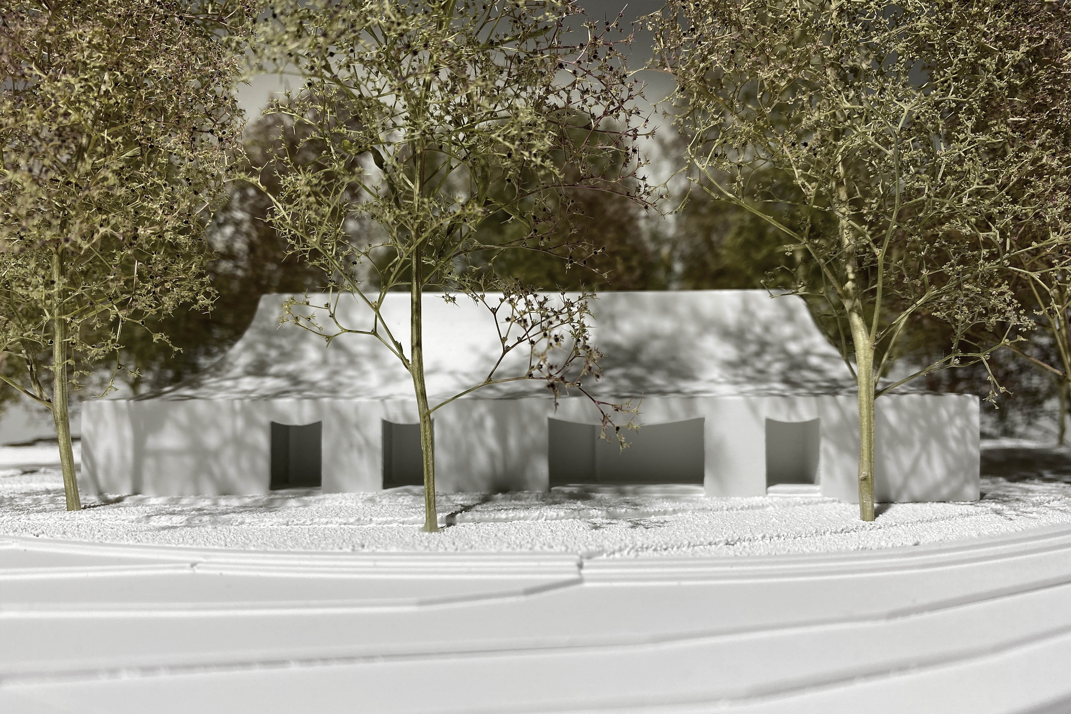Das Freilichtmuseum Ballenberg benötigt ein neues Gesamtkonzept für seinen Haupteingang. Dieser soll sich als repräsentatives Element in die Landschaft integrieren und mit neuen Depoträumen, Werkhofflächen und einem Parkhaus ergänzt werden. Der erarbeitete Vorschlag vereint all diese Anforderungen in einem Objekt, das sich entlang des Waldrandes positioniert. Nordseitig entsteht ein gedeckter Ankunftsort, der den öffentlichen Verkehr und die höhergelegenen Parkdecks über ein Showlager erschliesst. Südseitig setzt das Objekt einen Grundakkord auf dem neuen Museumsplatz, der als gestalteter Freiraum mit den bestehenden Gebäuden zu einem musealen Gesamtensemble verwoben werden soll.