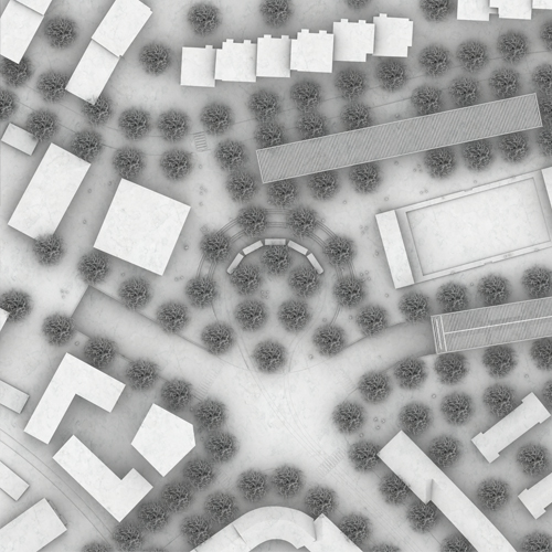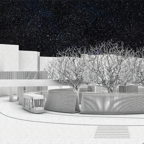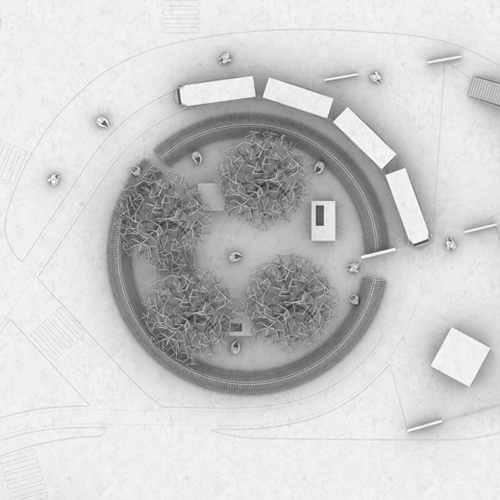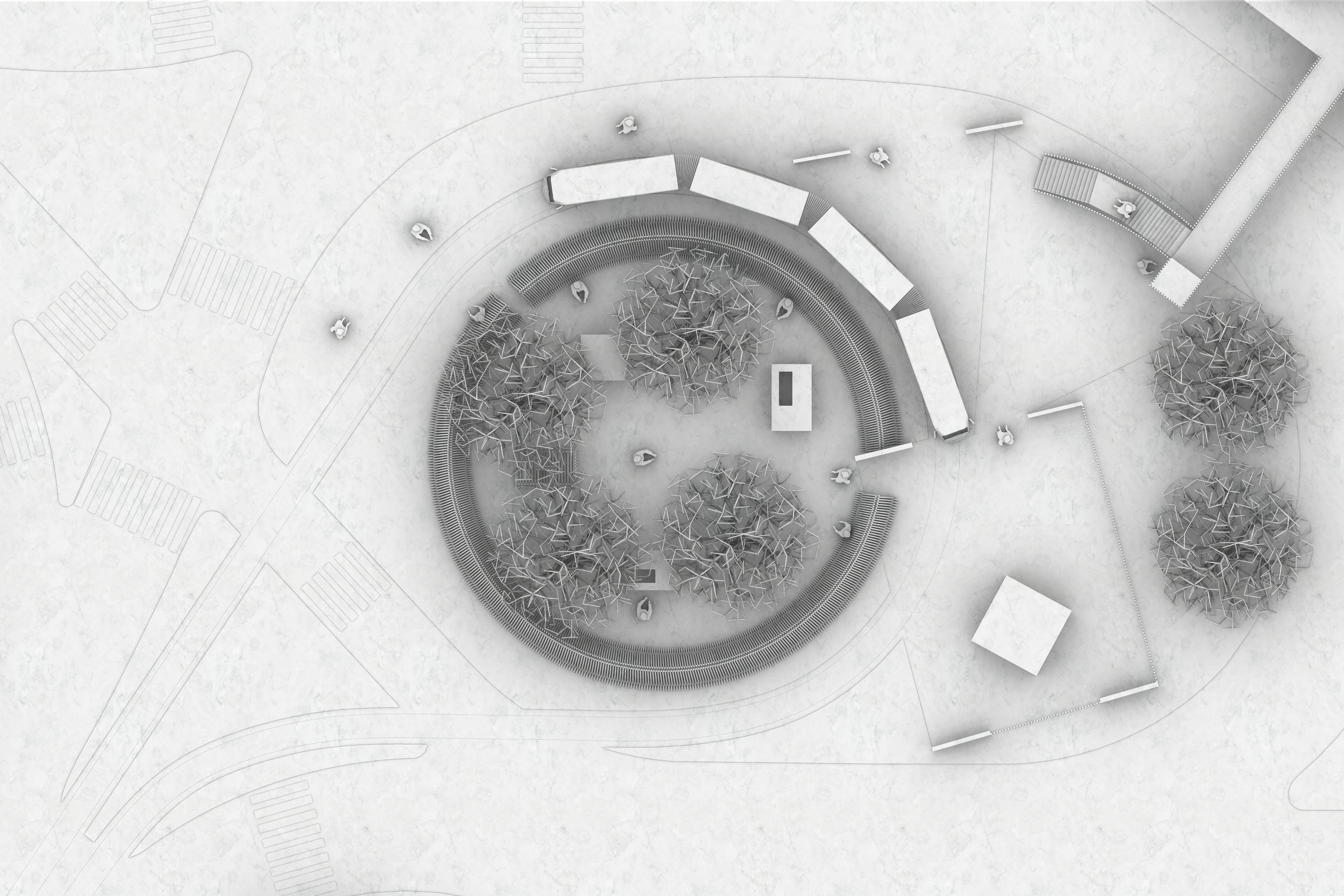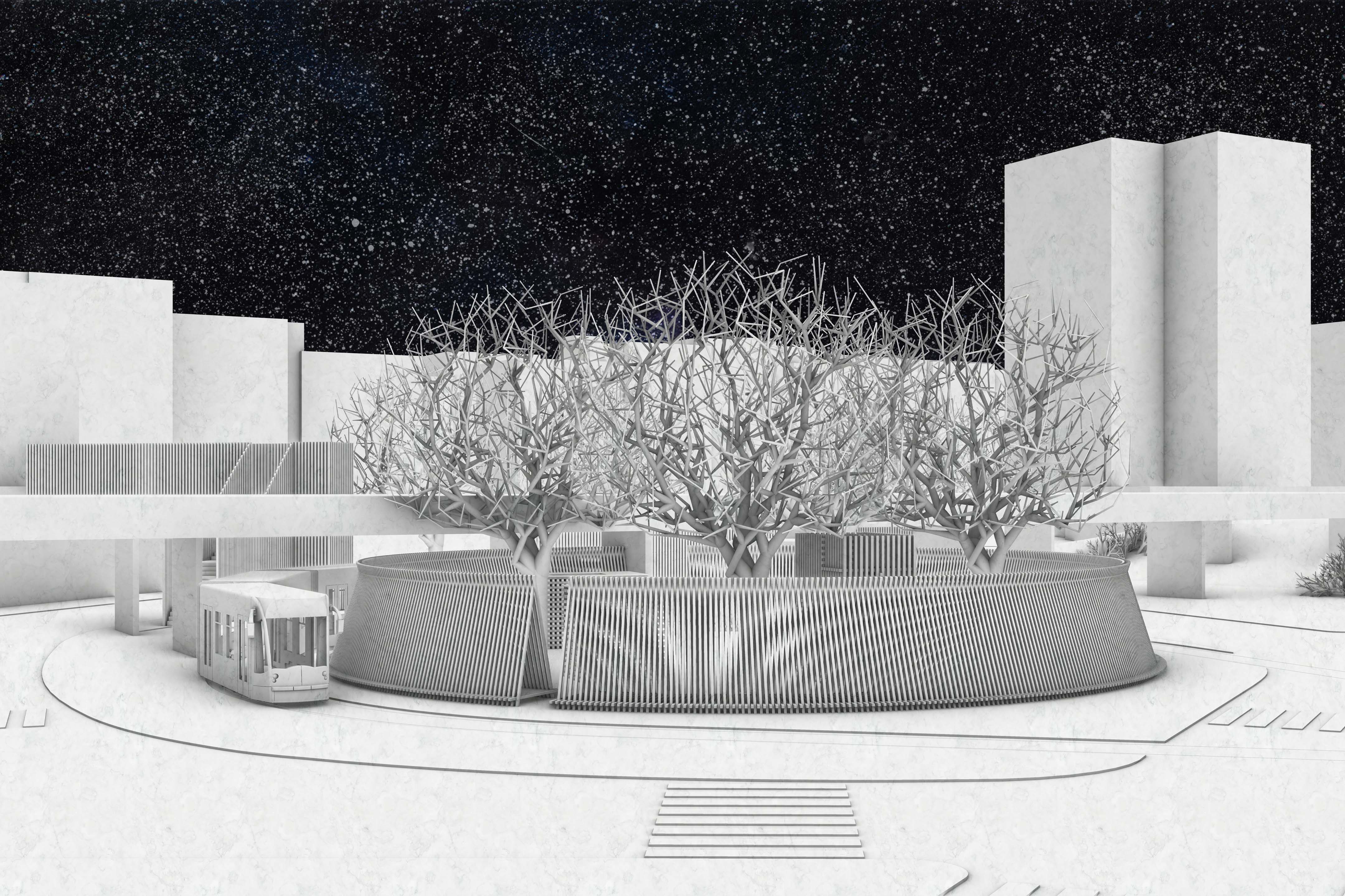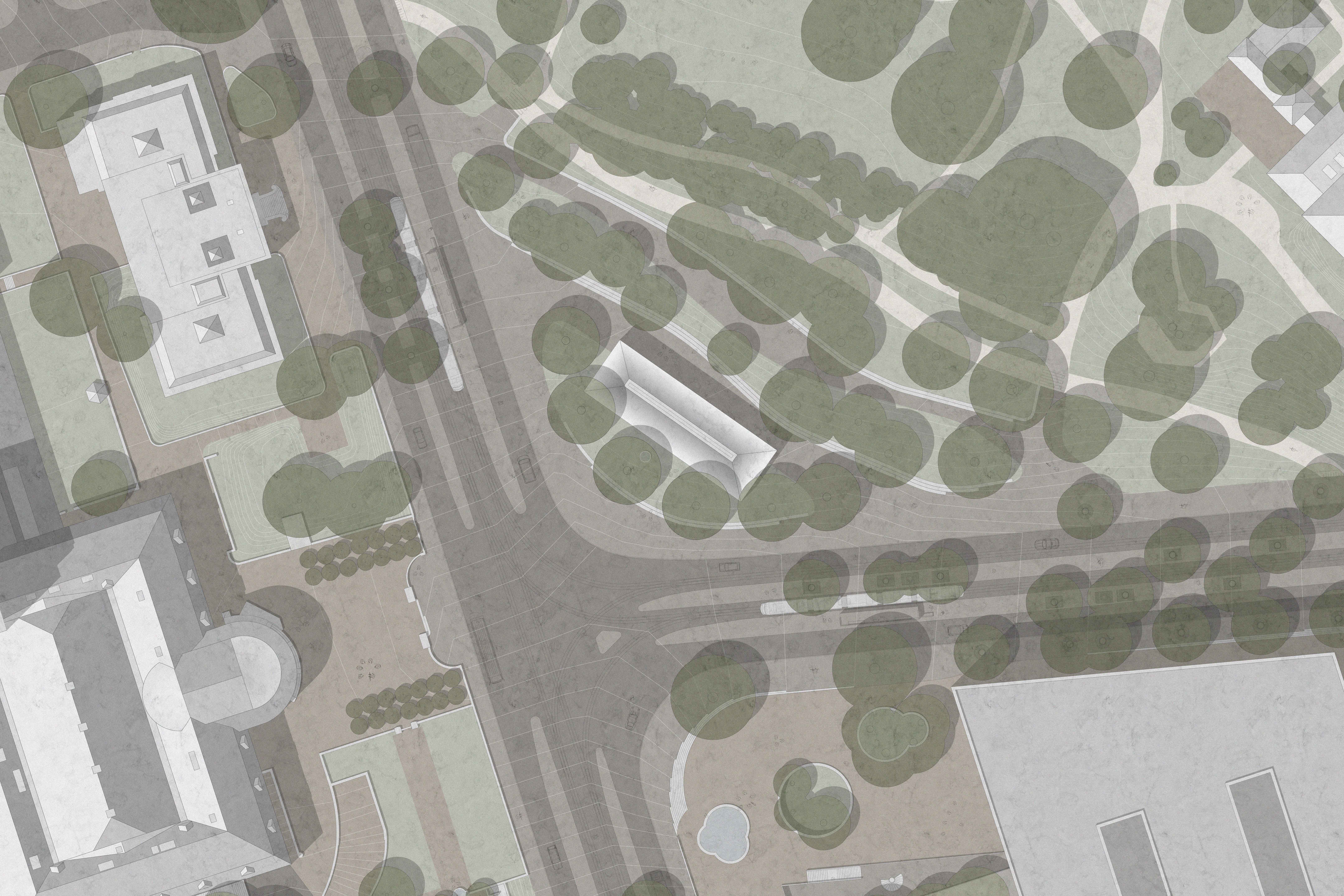 Der Ostring in Bern zählt zu den hochgradig lärmbelasteten Wohnquartieren der Schweiz. Die bestehende Verkehrsführung trennt das Quartier in zwei Teile und hinterlässt eine lebensfeindliche Umgebung. Besonders Fussgänger werden durch die städtebauliche Schneise benachteiligt, die jene überwinden oder die zentral gelegene Tramstation erreichen möchten. In einer ersten Intervention wird die Tramschlaufe zu einem Hortus Conclusus ausformuliert, der in seinem Zentrum einen gefassten Raum für den kurzweiligen Aufenthalt schafft. Im Strassenraum bildet die strukturelle Umfriedung einen neuen Fixpunkt und entlang der Geleise eine qualitative Wartezone aus. In ferner Zukunft soll die Verkehrsführung in den Untergrund verlegt und ein belebtes Quartierzentrum realisiert werden.