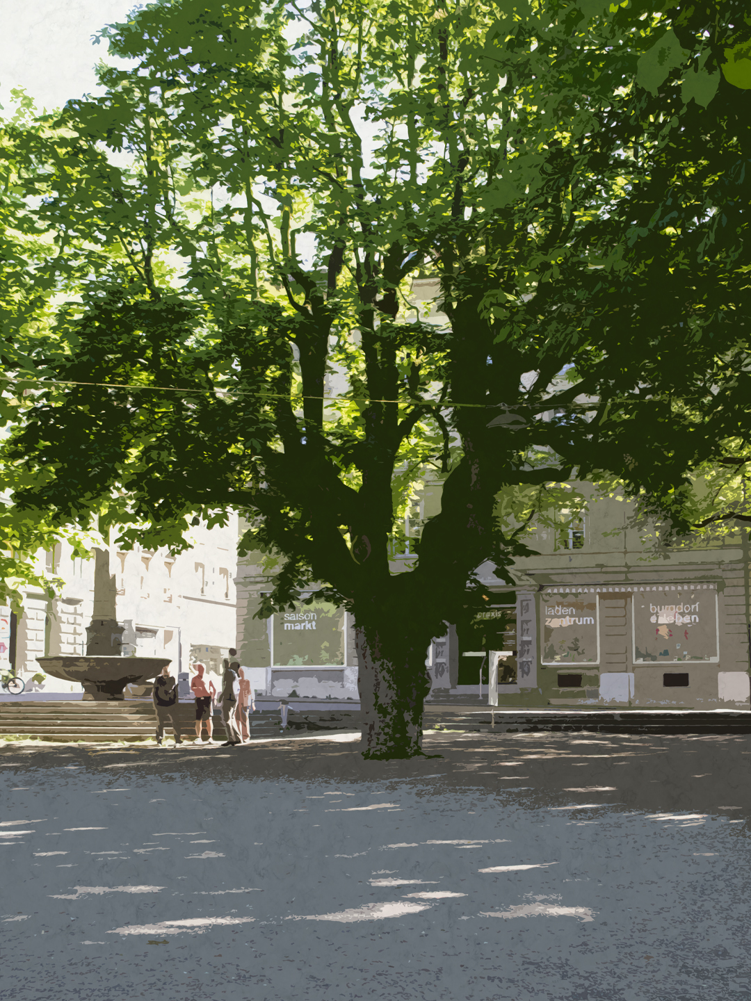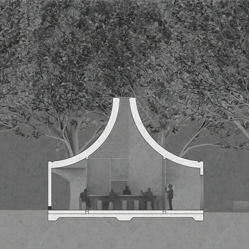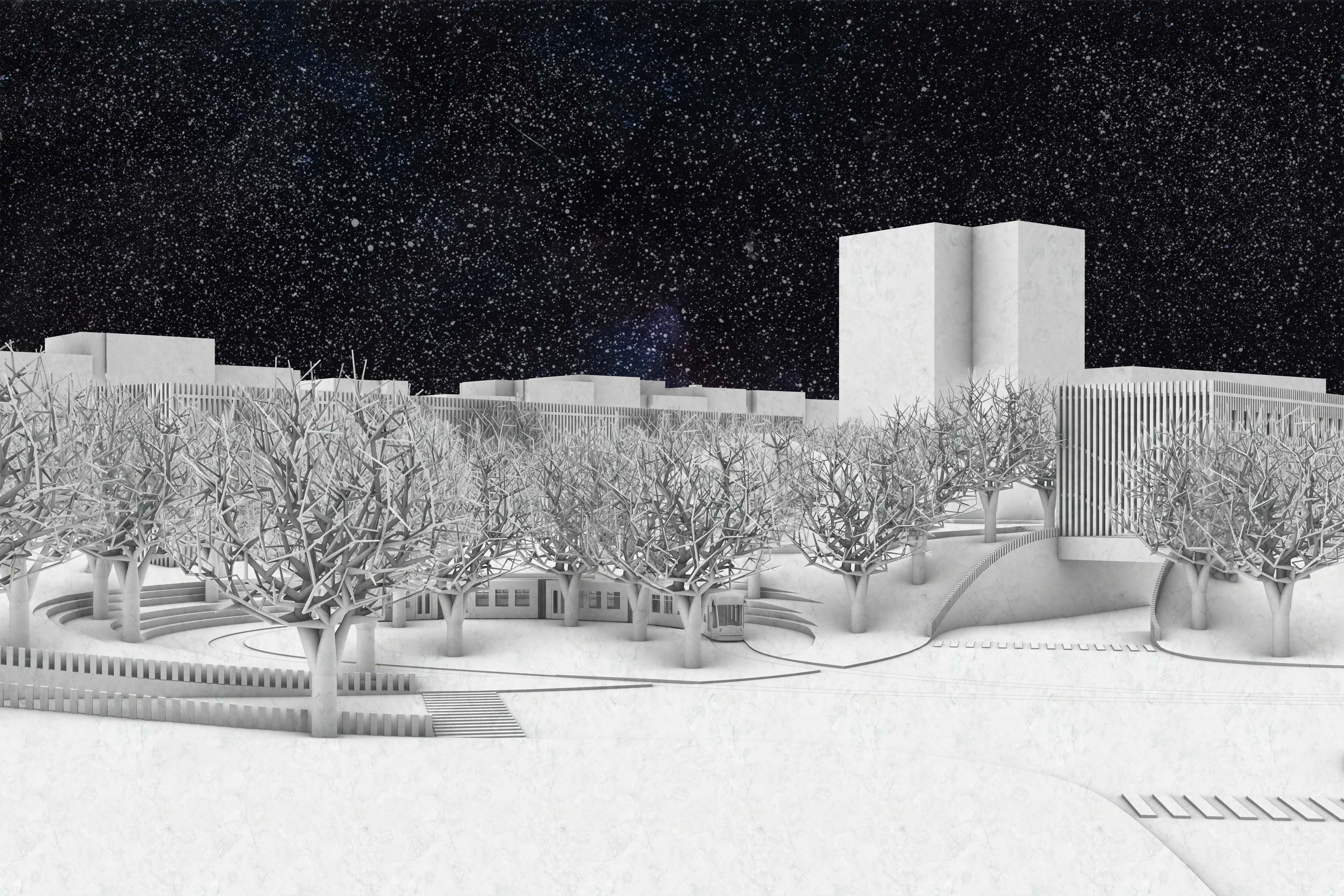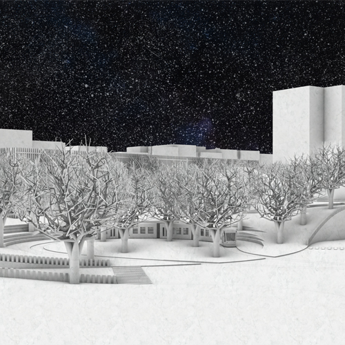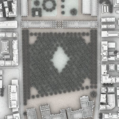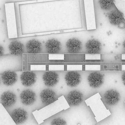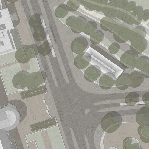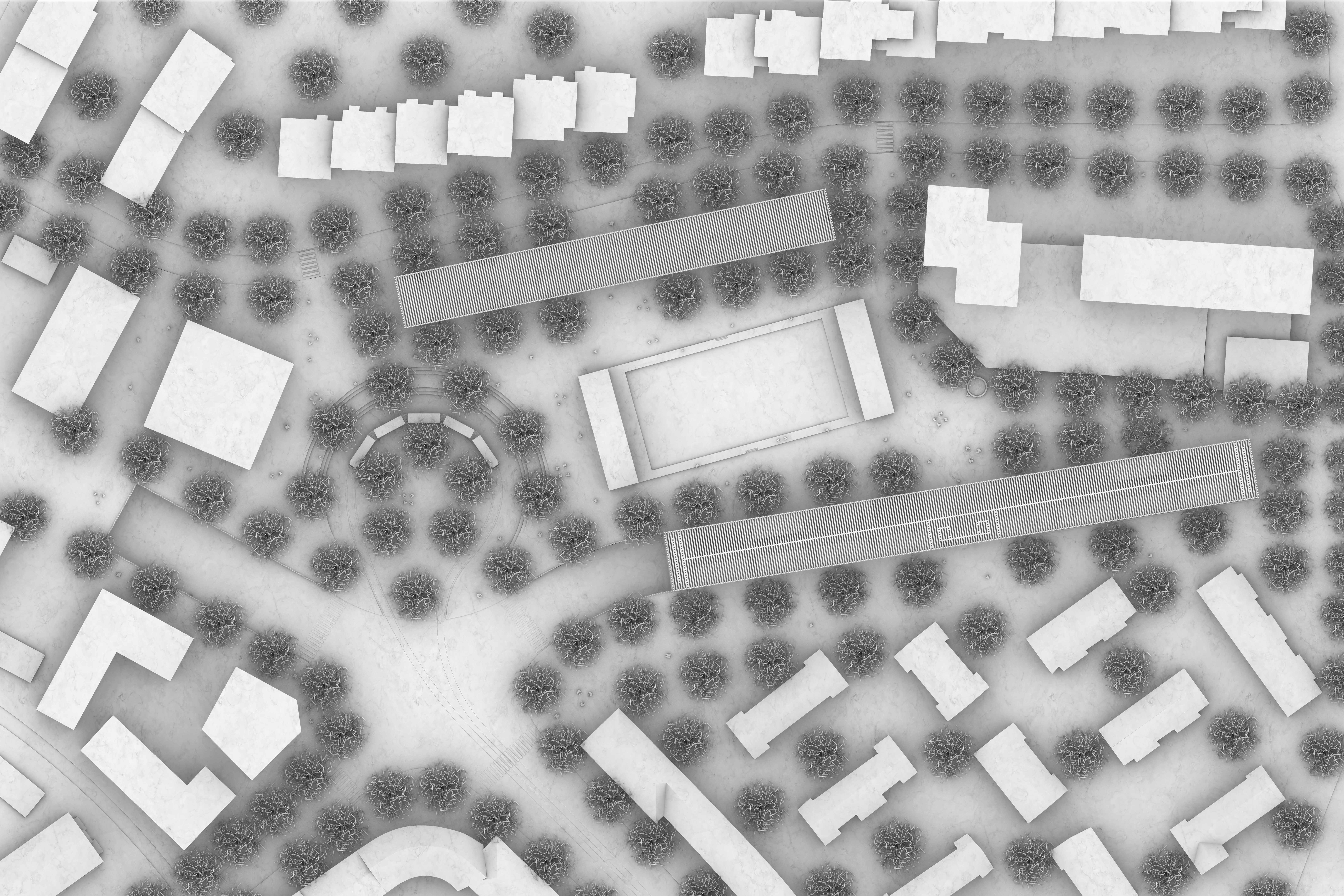 Der Ostring in Bern zählt zu den hochgradig lärmbelasteten Wohnquartieren der Schweiz. Die bestehende Verkehrsführung trennt das Quartier in zwei Teile und hinterlässt eine lebensfeindliche Umgebung. Besonders Fussgänger werden durch die städtebauliche Schneise benachteiligt, die jene überwinden oder die zentral gelegene Tramstation erreichen möchten. In einer ersten Intervention wird die Tramschlaufe zu einem Hortus Conclusus ausformuliert, der in seinem Zentrum einen gefassten Raum für den kurzweiligen Aufenthalt schafft. Im Strassenraum bildet die strukturelle Umfriedung einen neuen Fixpunkt und entlang der Geleise eine qualitative Wartezone aus. In ferner Zukunft soll die Verkehrsführung in den Untergrund verlegt und ein belebtes Quartierzentrum realisiert werden.