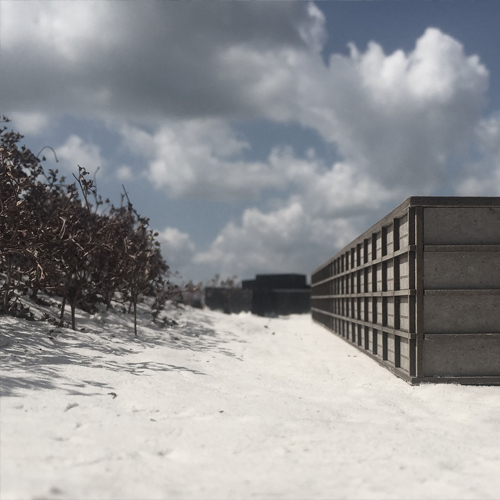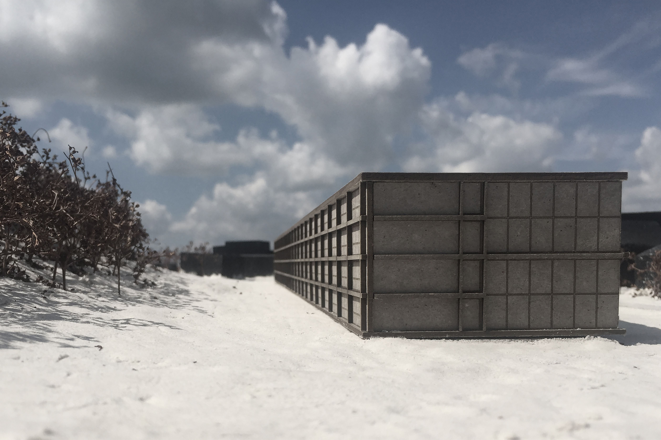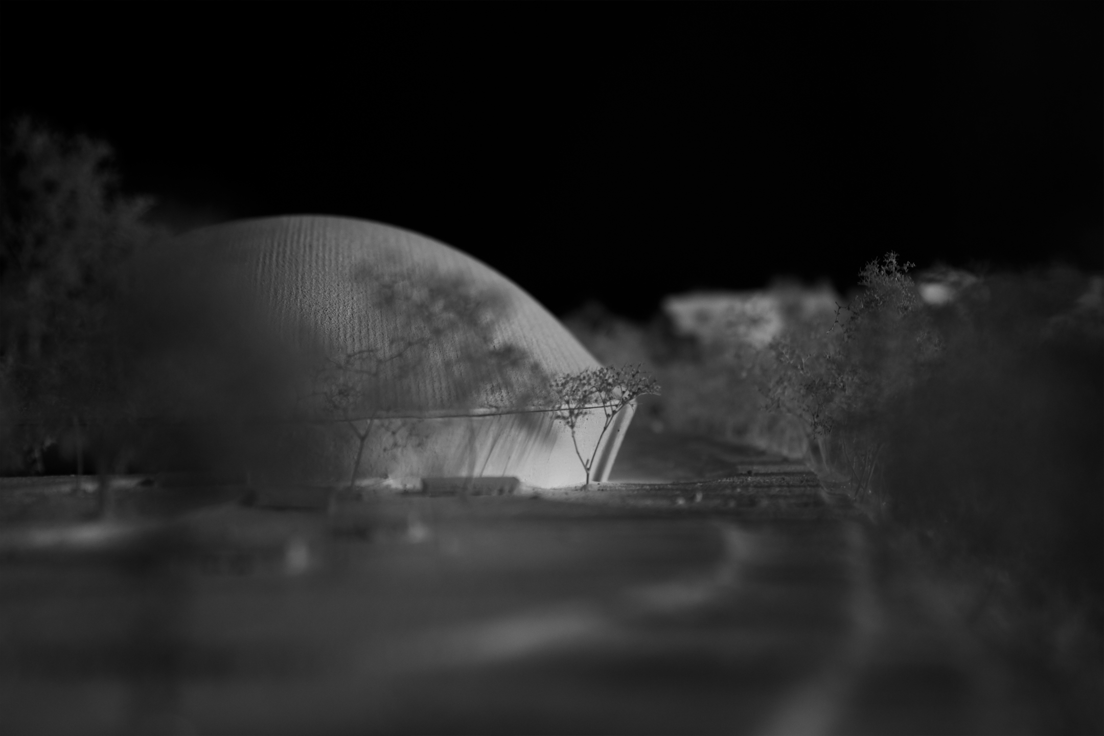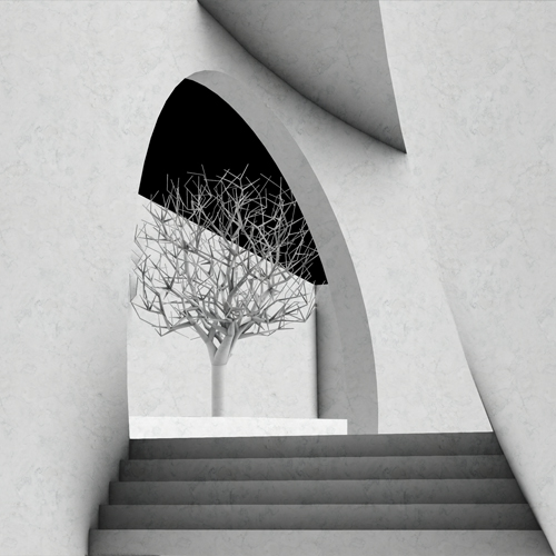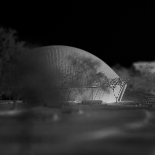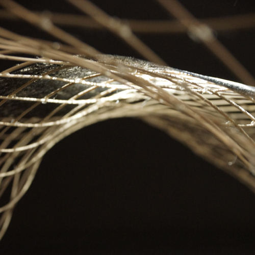 An einem fiktiven Ort wird ein räumliches Objekt erstellt, das sich durch ein atmosphärisches Erlebnis Individualisiert. Im Gegensatz zu hochleistungsfähigen Gitterschalen definiert sich die Form durch unregelmässige Knotenpunkte. Die daraus resultierende Formvielfalt nimmt bewusst statische Defizite in Kauf, die mit einem zusätzlichen Materialaufwand ausgeglichen werden können.