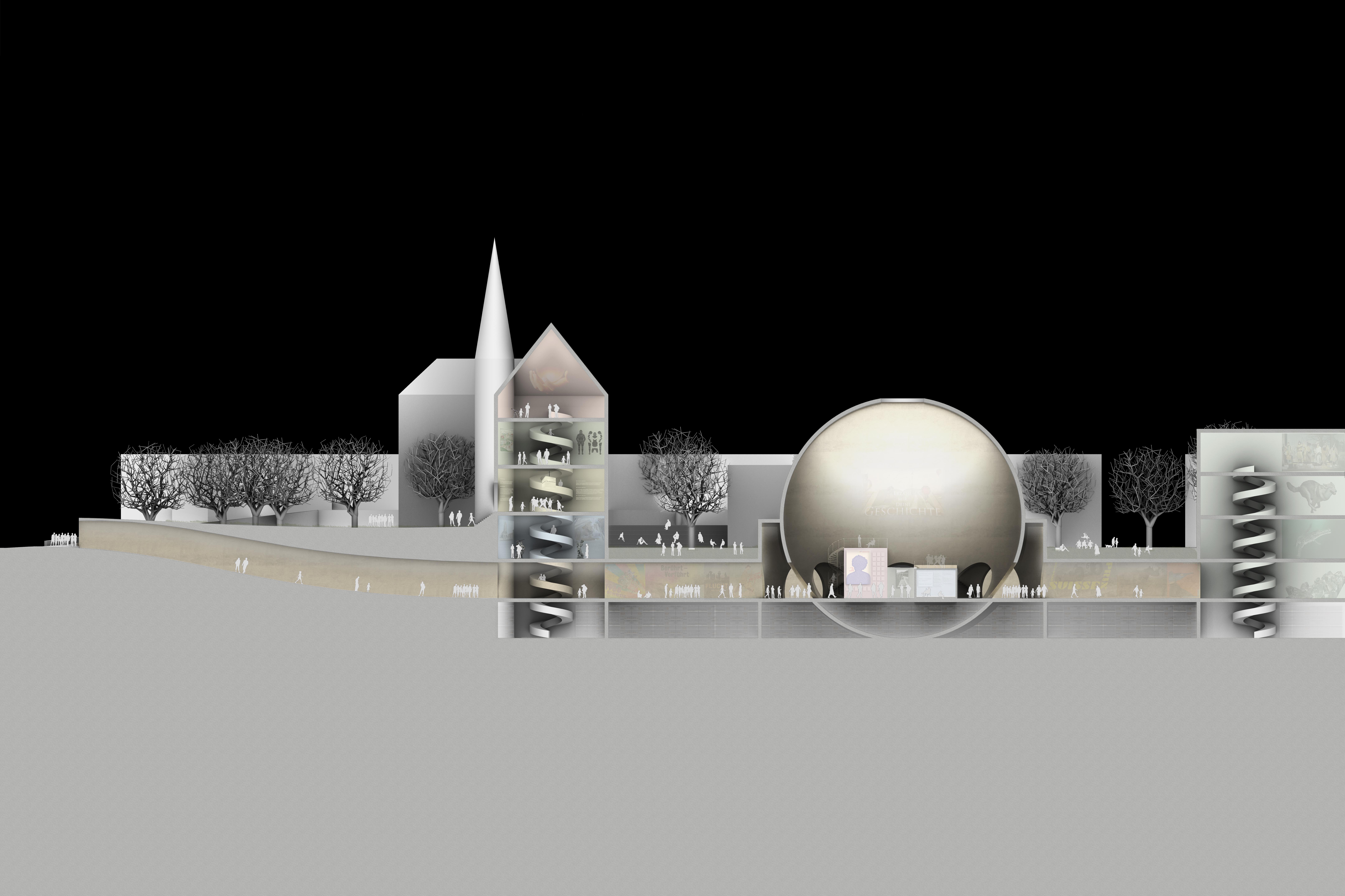 Das Bernisch Historische Museum überlegt sich, wie es sich in ferner Zukunft weiterentwickeln könnte und ruft zur interdisziplinären Zusammenarbeit auf. Als Reaktion auf die voranschreitende Digitalisierung und Instrumentalisierung der Vernunft, entsteht im Zentrum des Museumsparks ein neuer Ort des Denkens und Handelns. Dieser manifestiert sich als räumliches Resultat einer unterirdischen Fusion aller parkangrenzenden Museen und beteiligt sich als formales Symbol am städtebaulichen Dialog.