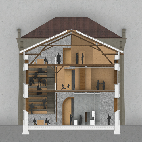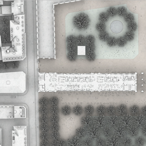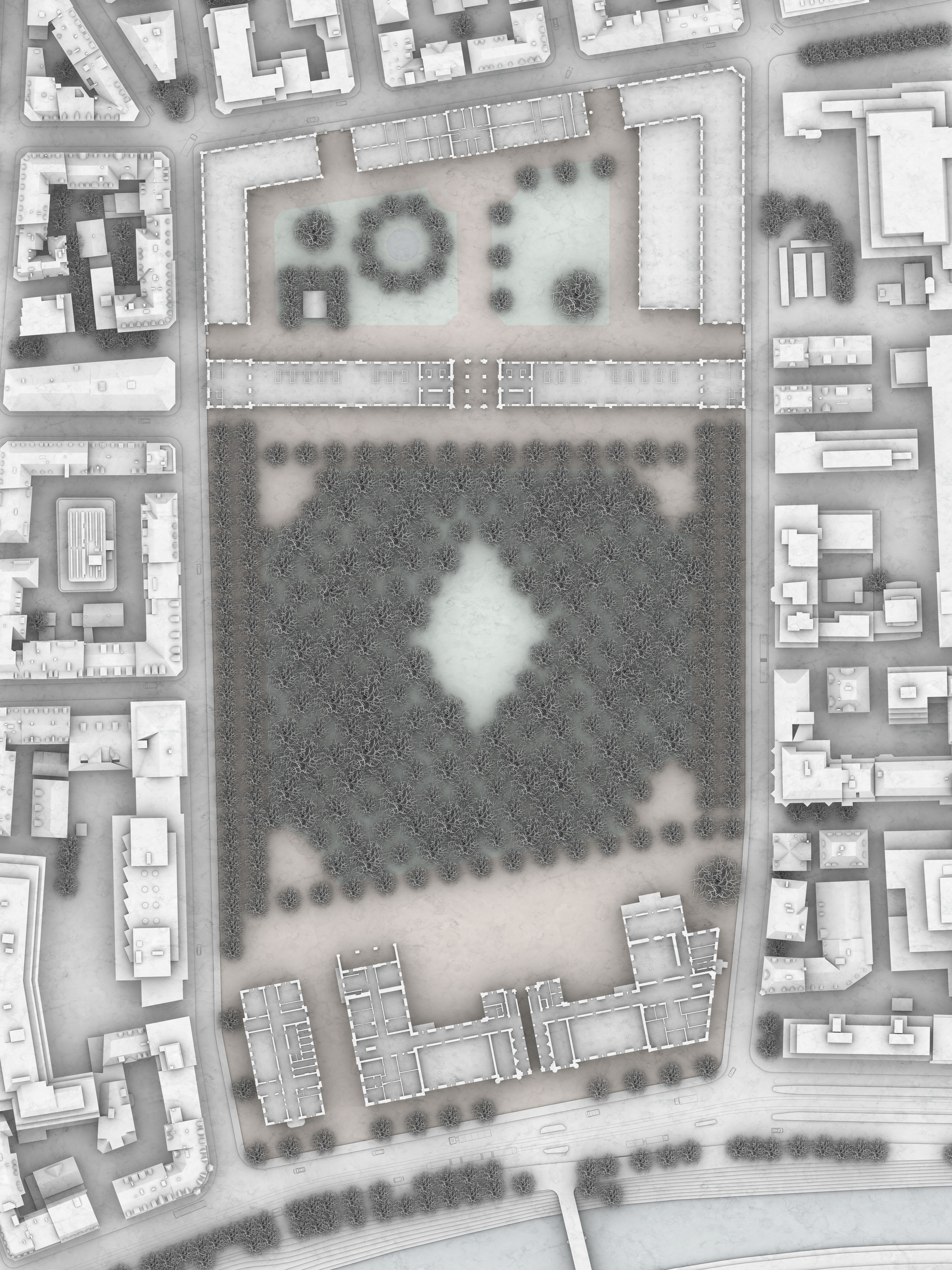 Das Kasernenareal der Stadt Zürich ist seit Jahrzehnten ein grosses Planungsdebakel. Der aktuelle Masterplan mündete auf politischer Ebene in einem kontroverses Gedankenkonstrukt, das nur mit einer neuen Vision aufgelöst werden kann. Diese muss die Individualbedürfnisse miteinander vereinen, damit das Areal zu einem Ort der kulturellen Lebendigkeit transformiert werden kann. Dies soll gelingen, in dem das Zeughaus geschossübergreifend zu einer belebten Kommunikationslandschaft umstrukturiert wird. Künftig soll sich dort das kulturelle Erbgut des Langstrassenquartiers ansiedeln können, welches durch die Gentrifizierung sukzessive aus dem Stadtraum verdrängt wird. Die angrenzende Kasernenwiese wird durch einen grosszügigen Baumgarten abgelöst, der als städtebaulicher Akzent den Aufbruch ein neues Zeitalter symbolisiert.